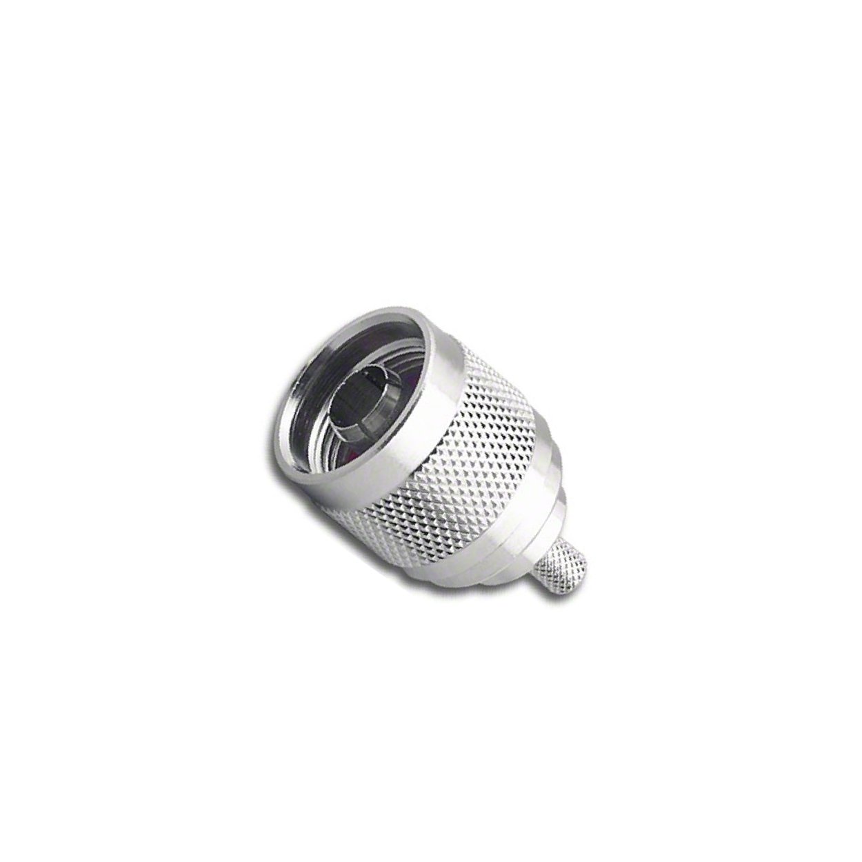 Conector de crimpado tipo N-Macho para cable coaxial RG-58. Diseño de conector de alta calidad con resistencia a la corrosión. Proporciona una interfaz de alta calidad con una conexión simplificada de 50 ohmios, contactos niquelados y chapados en oro.