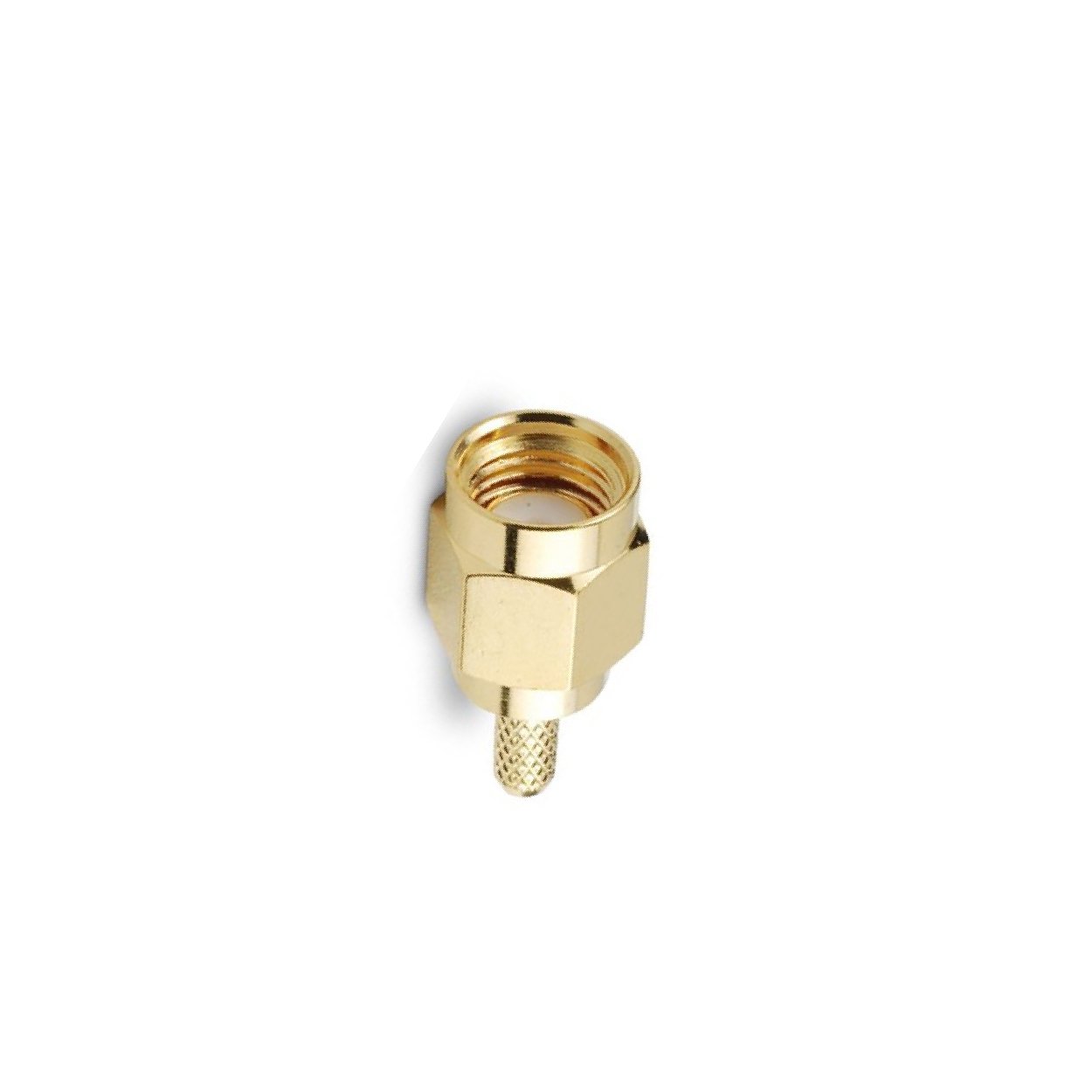 Conector SMA macho para cable RG316. Diseñado para cables RG316 de baja pérdida. Pines de contacto chapados en oro para minimizar la pérdida de señal. Cuerpo del conector y tuerca de acoplamiento chapados para mayor resistencia a la corrosión.