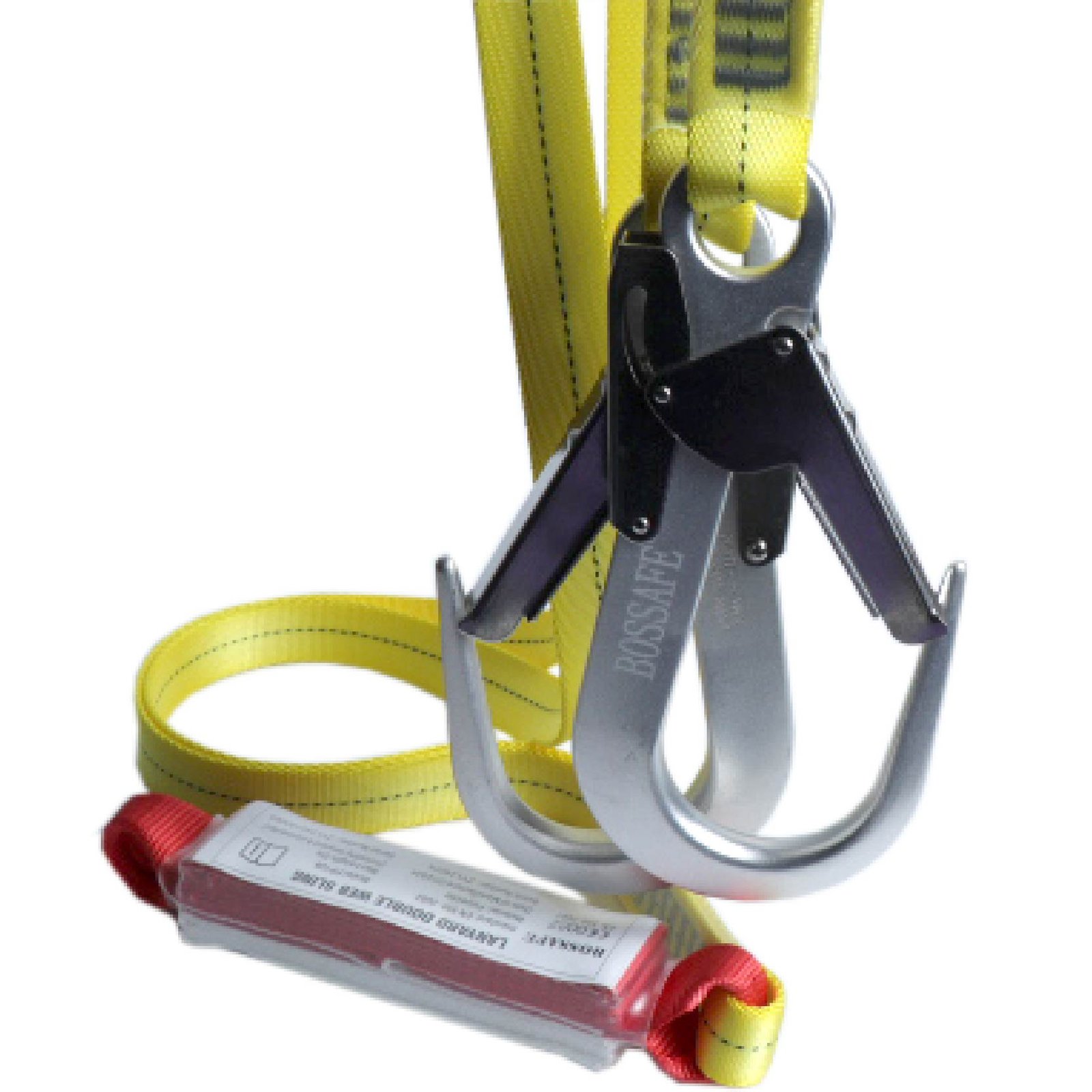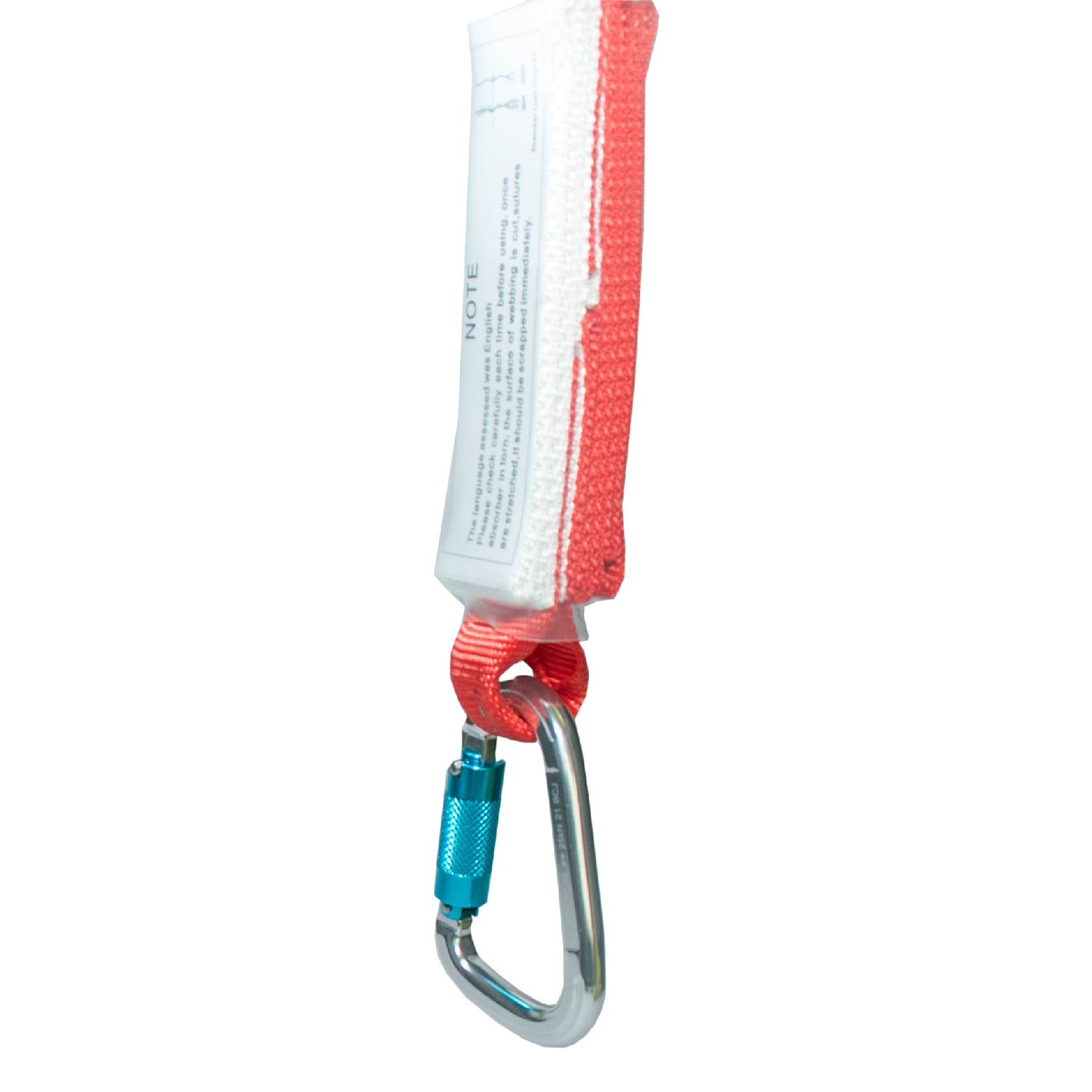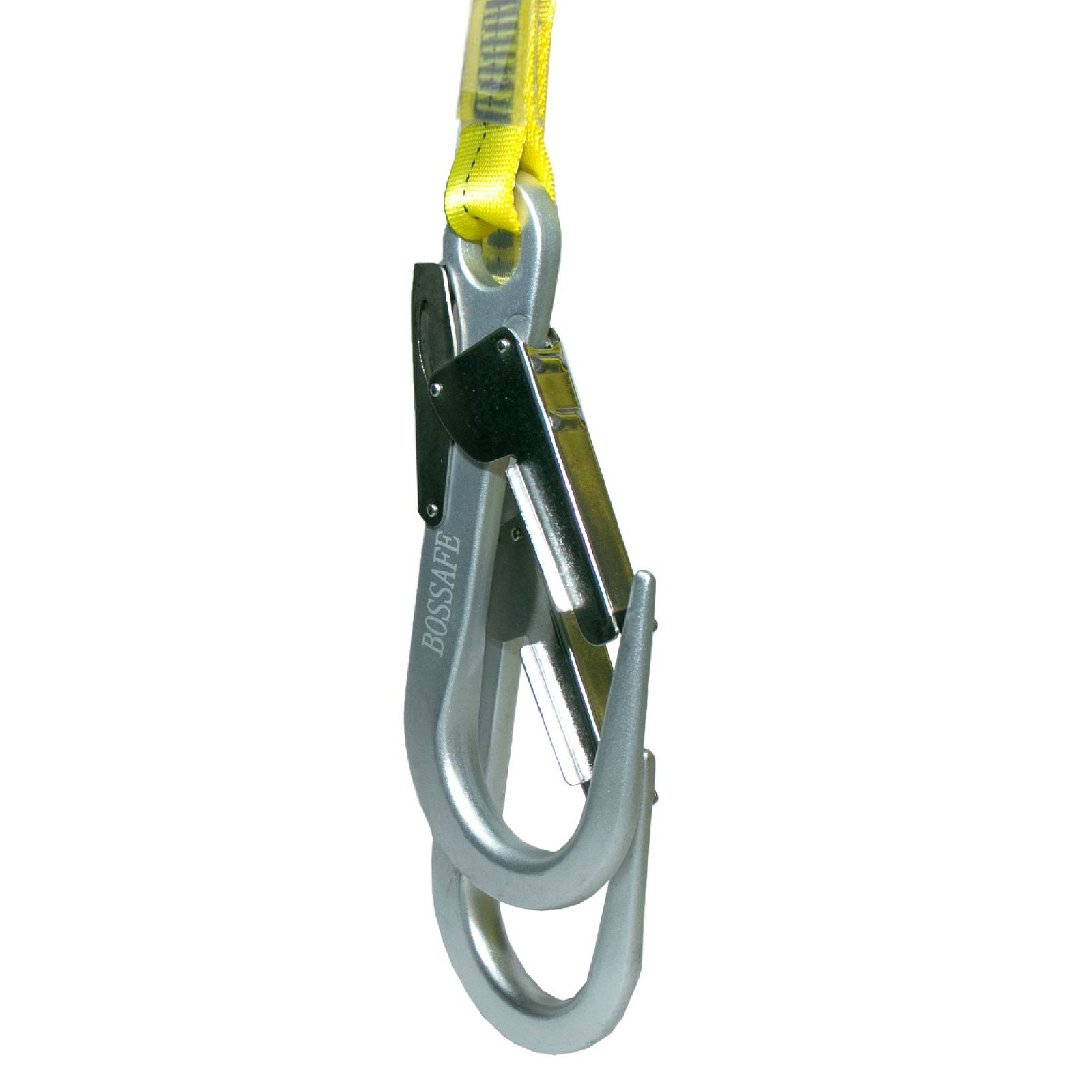 Línea de vida doble con ganchos de acero y mosquetones de seguridad.