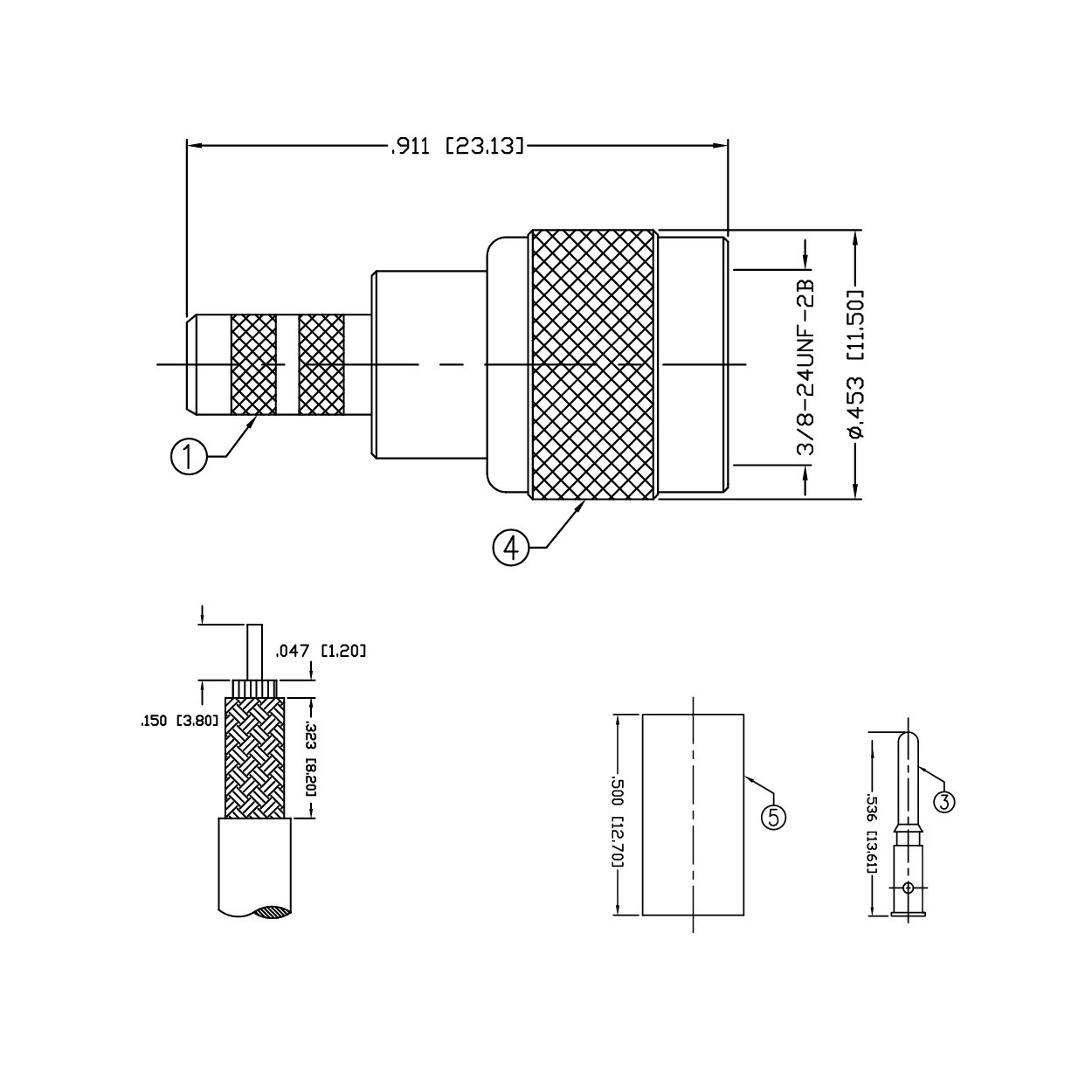 El Conector Mini-UHF de 3 piezas es para cable RG58, diseñado para utilizarse en conexiones de antenas.