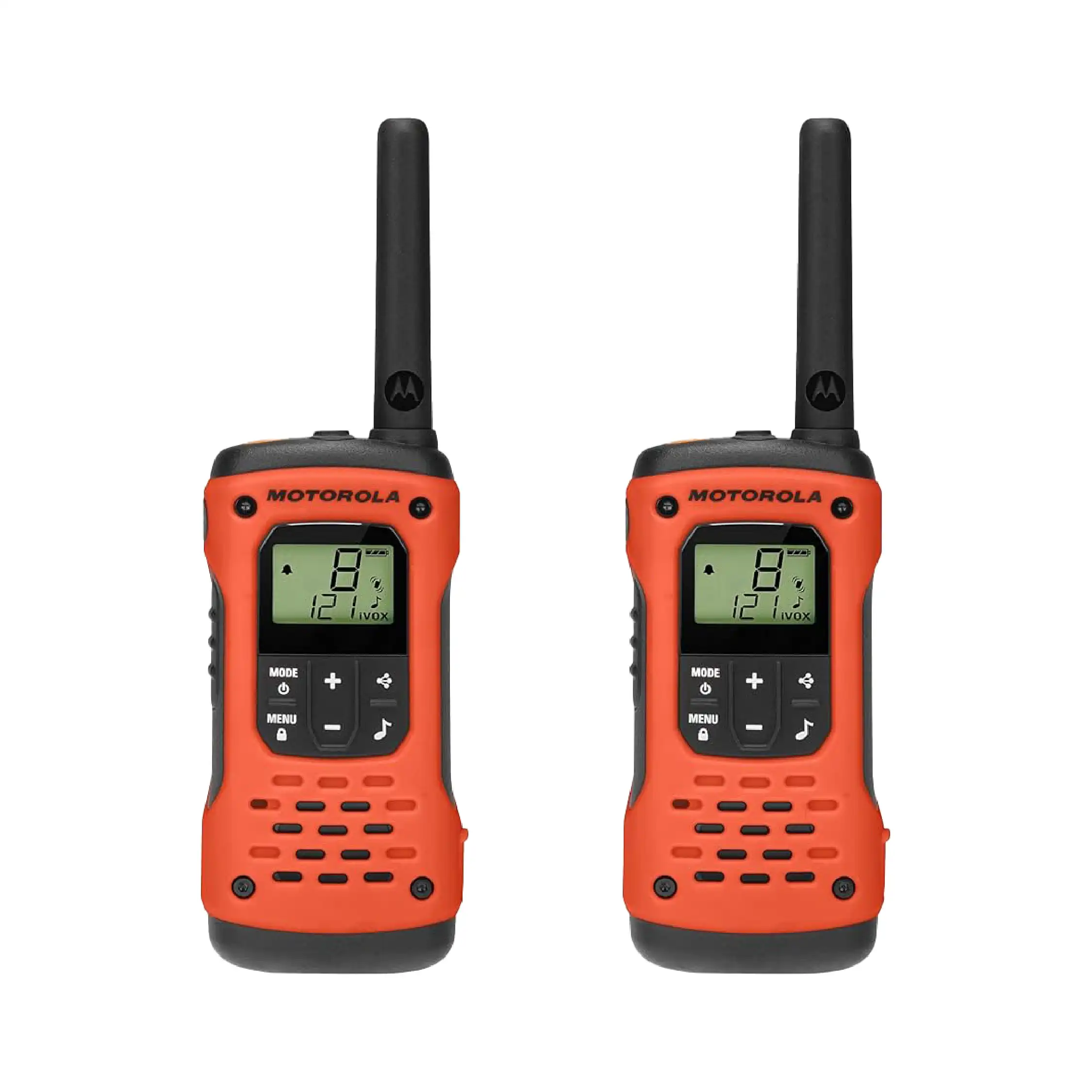 Confíe en que el radio de dos vías resistente al agua T600 H2O lo mantendrá conectado tanto en tierra como en el mar. Con su estándar IP67, el T600 H2O soporta una inmersión constante de hasta 1 metro durante 30 minutos y repele la lluvia más densa. - Linterna hidroactivada que flota* boca arriba para una fácil recuperación