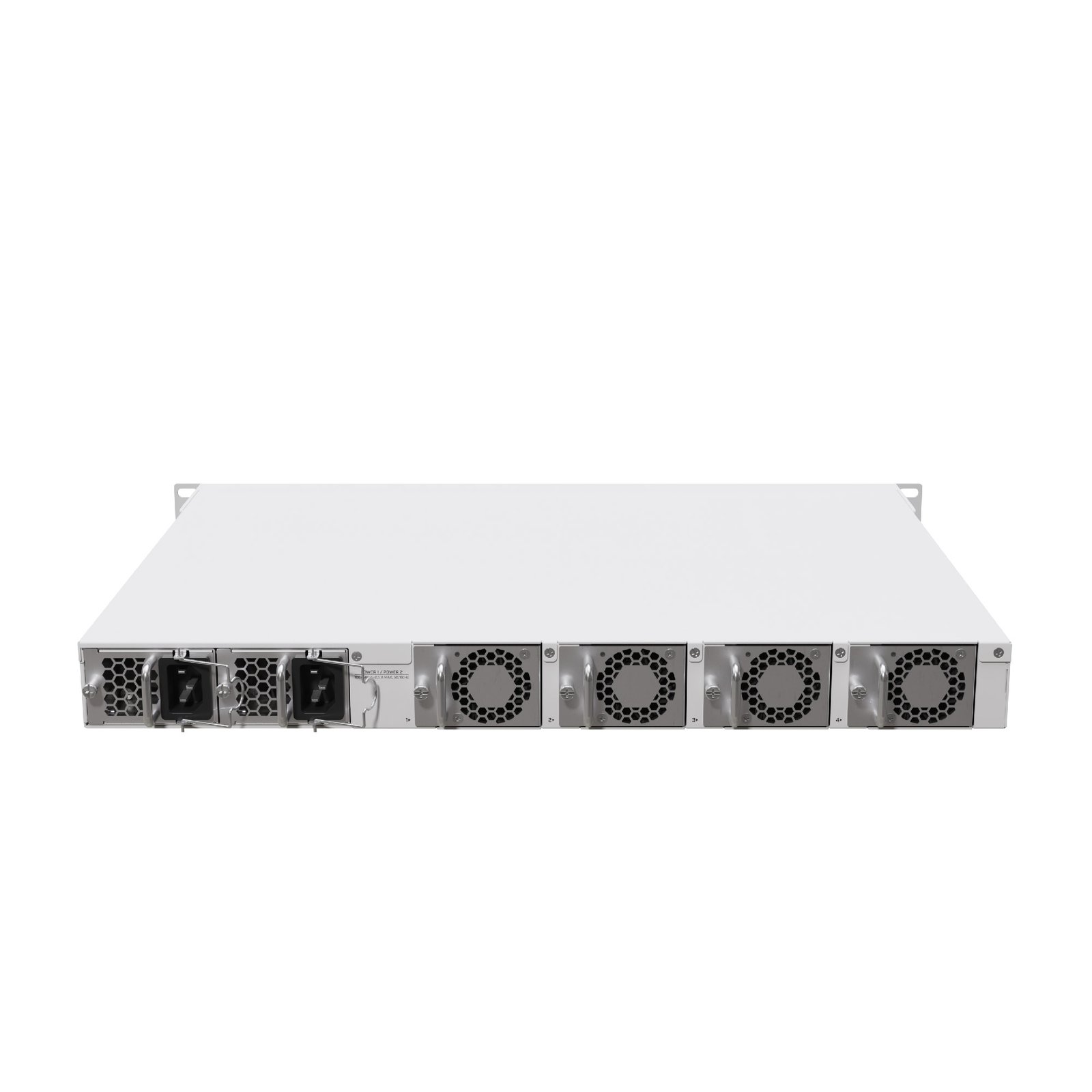 Hay 2 jaulas QSFP28 para conectividad ultrarrápida de 100 Gigabit, 12 jaulas SFP28 para redes de 25 Gigabit y un puerto Gigabit Ethernet . El dispositivo viene con 16 GB de RAM , almacenamiento NAND decente y dos ranuras M.2 SATA para almacenamiento adicional. Hay cuatro ventiladores intercambiables en caliente, así como fuentes de alimentación intercambiables en caliente con doble redundancia. Y estas fuentes de alimentación pueden parecerle familiares si ha usado nuestro CCR1072 anteriormente: puede seguir usando sus fuentes de alimentación intercambiables en caliente y módulos SFP anteriores.