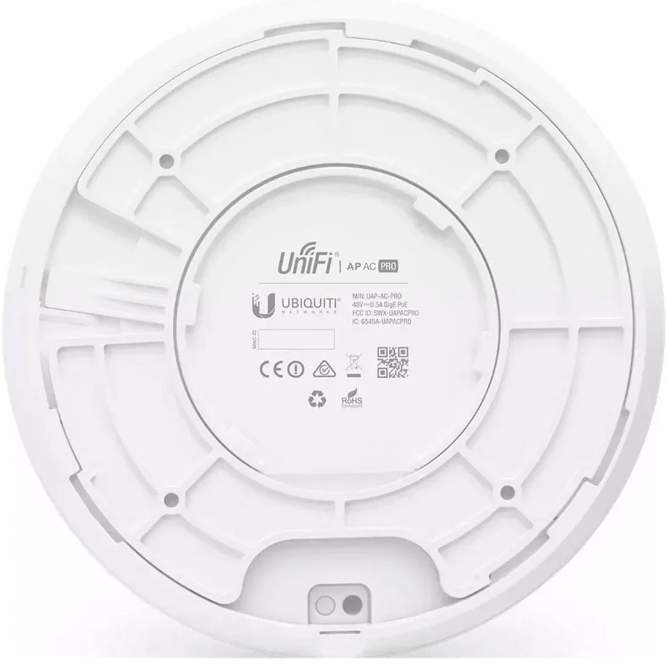 El Ubiquiti UAP-AC-PRO es un Punto de acceso Wi-Fi 5 de doble banda compatible con el estándar 802.11ac, que ofrece una velocidad de datos máxima combinada de 1750 Mbps (450 Mbps en la banda de 2,4 GHz y 1300 Mbps en la banda de 5 GHz).