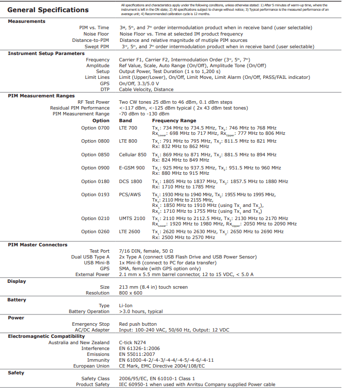 Anritsu Company presenta la primera alta potencia a batería solución de prueba de intermodulación pasiva (PIM) para las principales redes inalámbricas estándares en uso en todo el mundo. PIM es una forma de interferencia generado por componentes pasivos que normalmente se consideran como lineales como conectores, conjuntos de cables, filtros y antenas. Sin embargo, cuando se somete a altos niveles de potencia de RF que se encuentran en sistemas, estos dispositivos pueden generar señales espurias que aumentan el suelo de ruido del receptor y reducir el rendimiento del sitio.