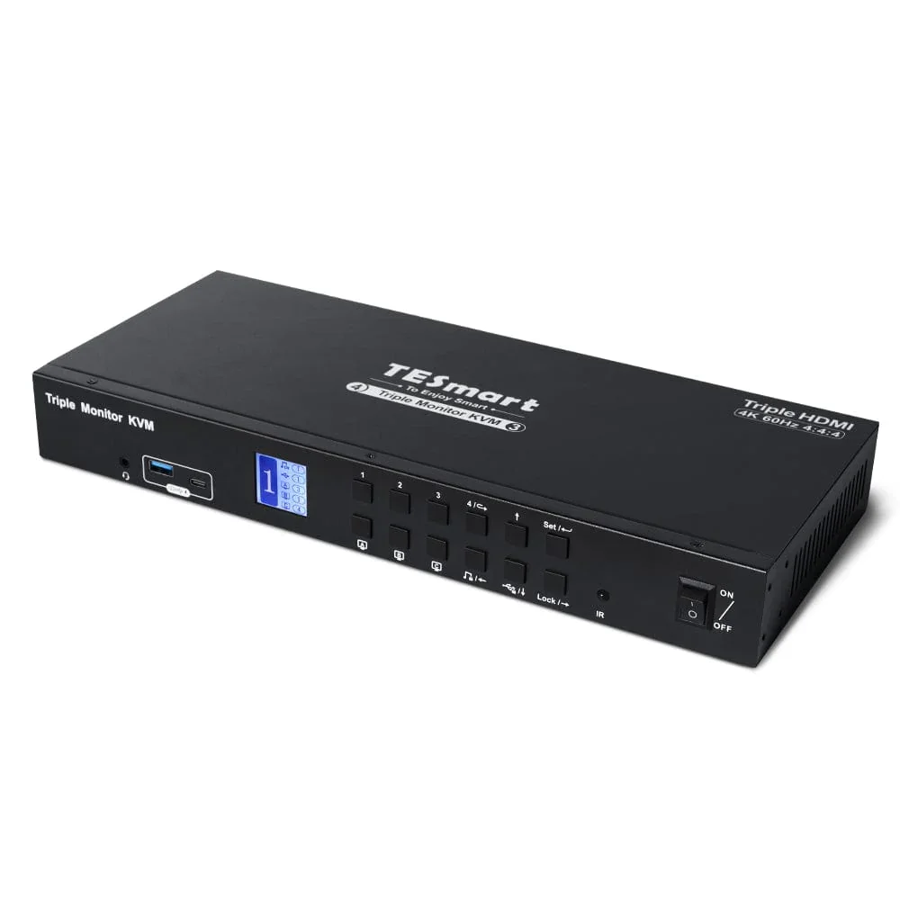 Conmutador KVM de monitor triple de 4 puertos HDMI 4K60Hz con concentrador USB 3.0, auriculares, audio y micrófono