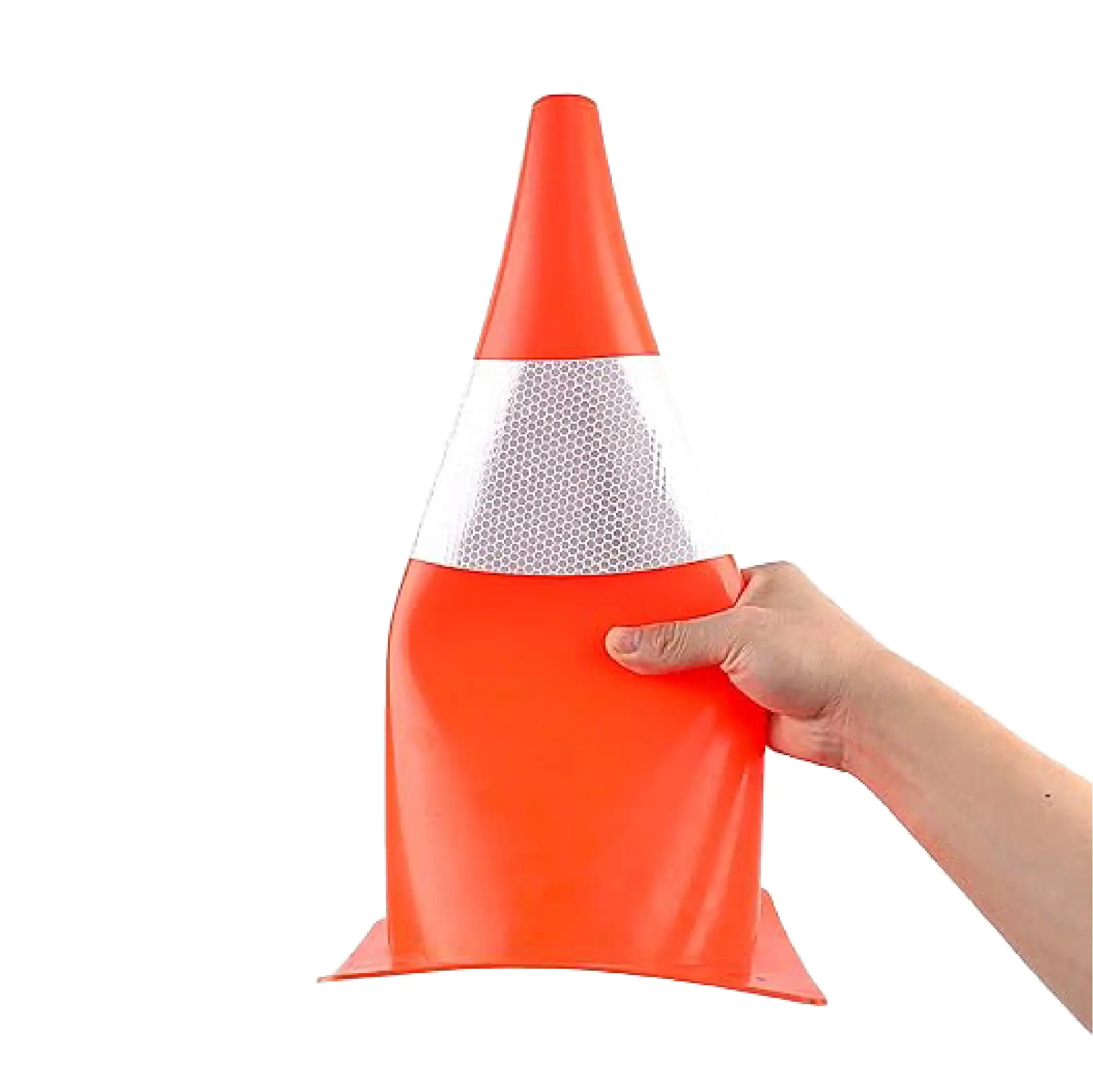 Conos de seguridad de tráfico con tiras reflectantes plateadas de alta intensidad, los conos naranjas fluorescentes brillantes son extremadamente llamativos para alertar a las personas para que lo noten sin importar el día o la noche, nublado o día de niebla.