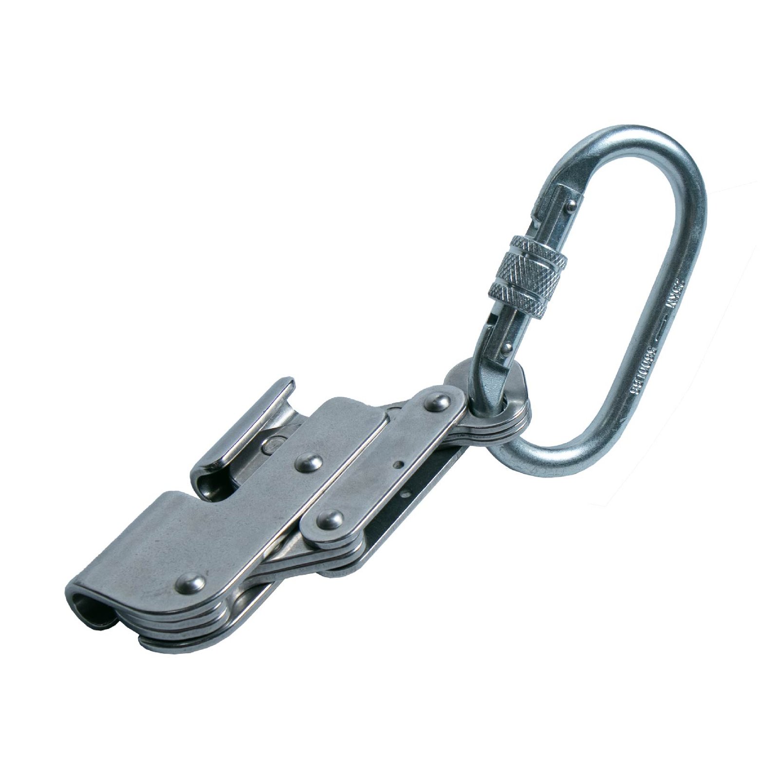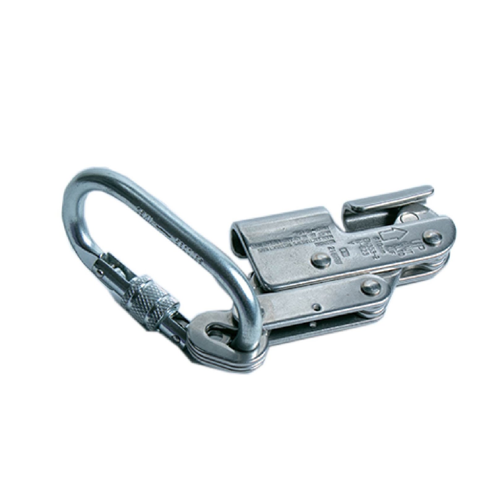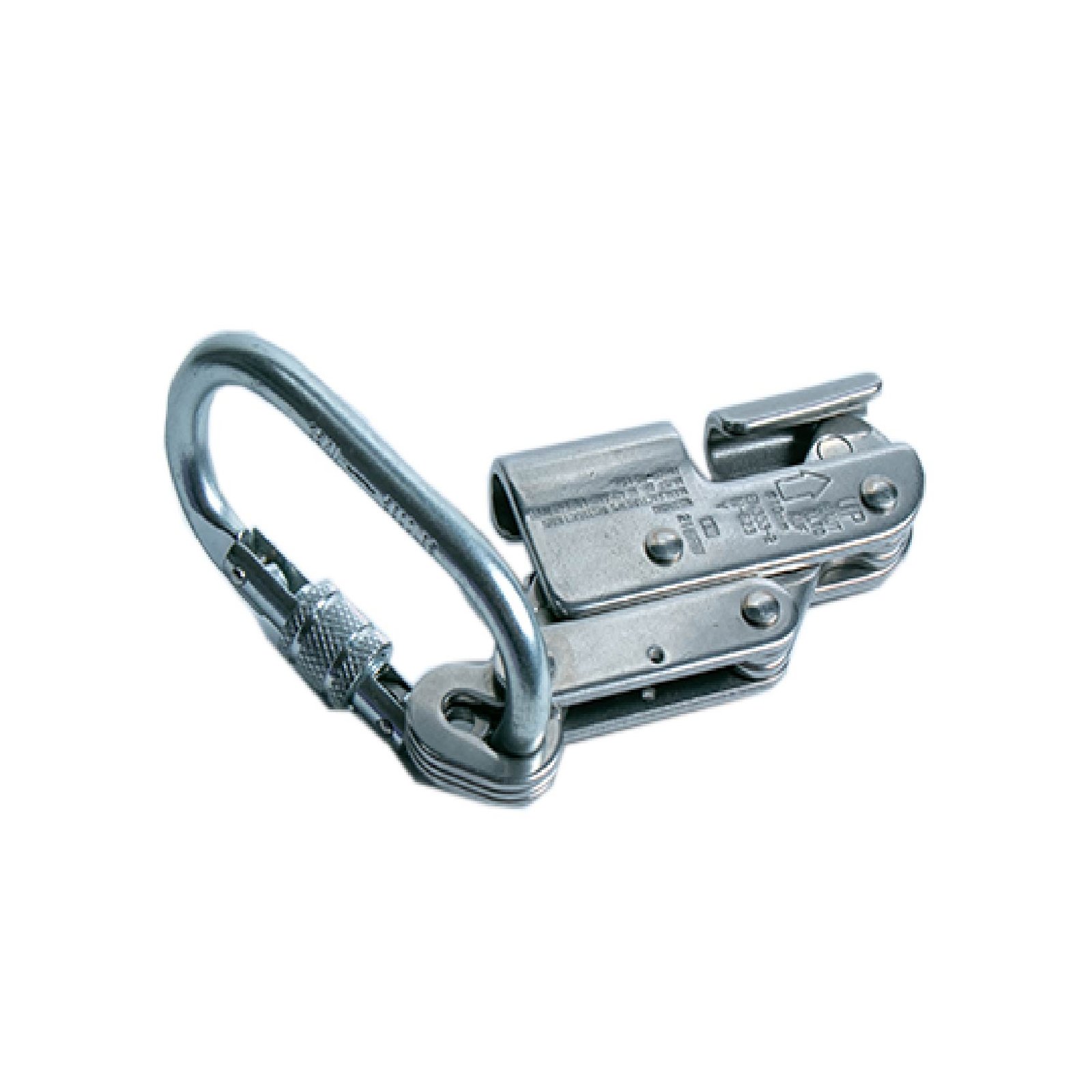 Dispositivo anti caídas con agarre de cable de acero de alta resistencia.