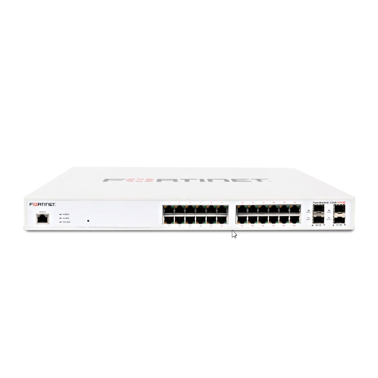 El Fortinet FortiSwitch-124E-POE es un conmutador POE administrado de capa 2+ equipado con 24 puertos Gigabit Ethernet y 4 ranuras SFP, con 12 puertos POE con una capacidad de potencia máxima de 185 W y control inteligente de la temperatura del ventilador para un funcionamiento eficiente.