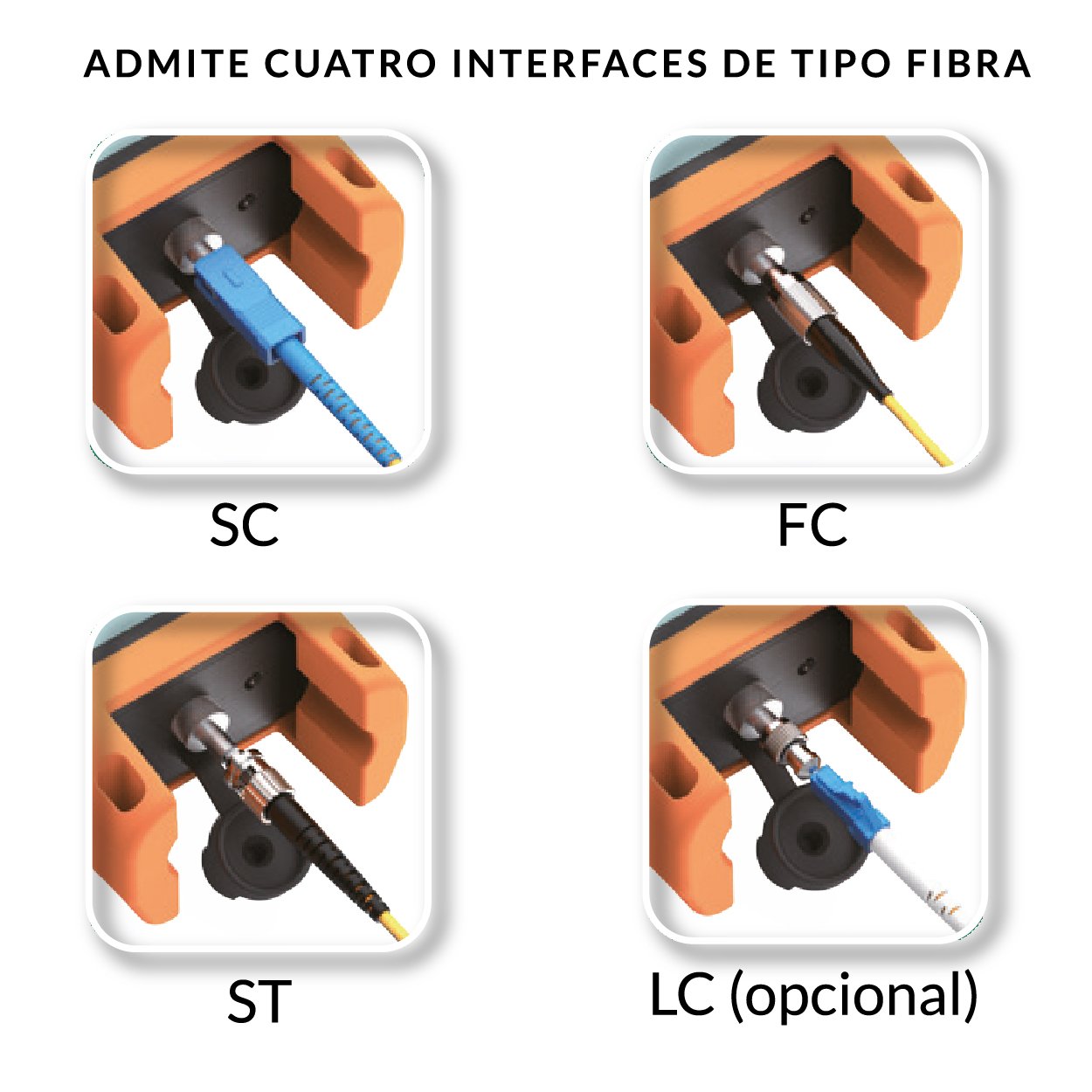 Equipo multifuncional, ideal para mediciones en redes. Compatible con conectores SC, FC, ST y LC. Algunas características son: