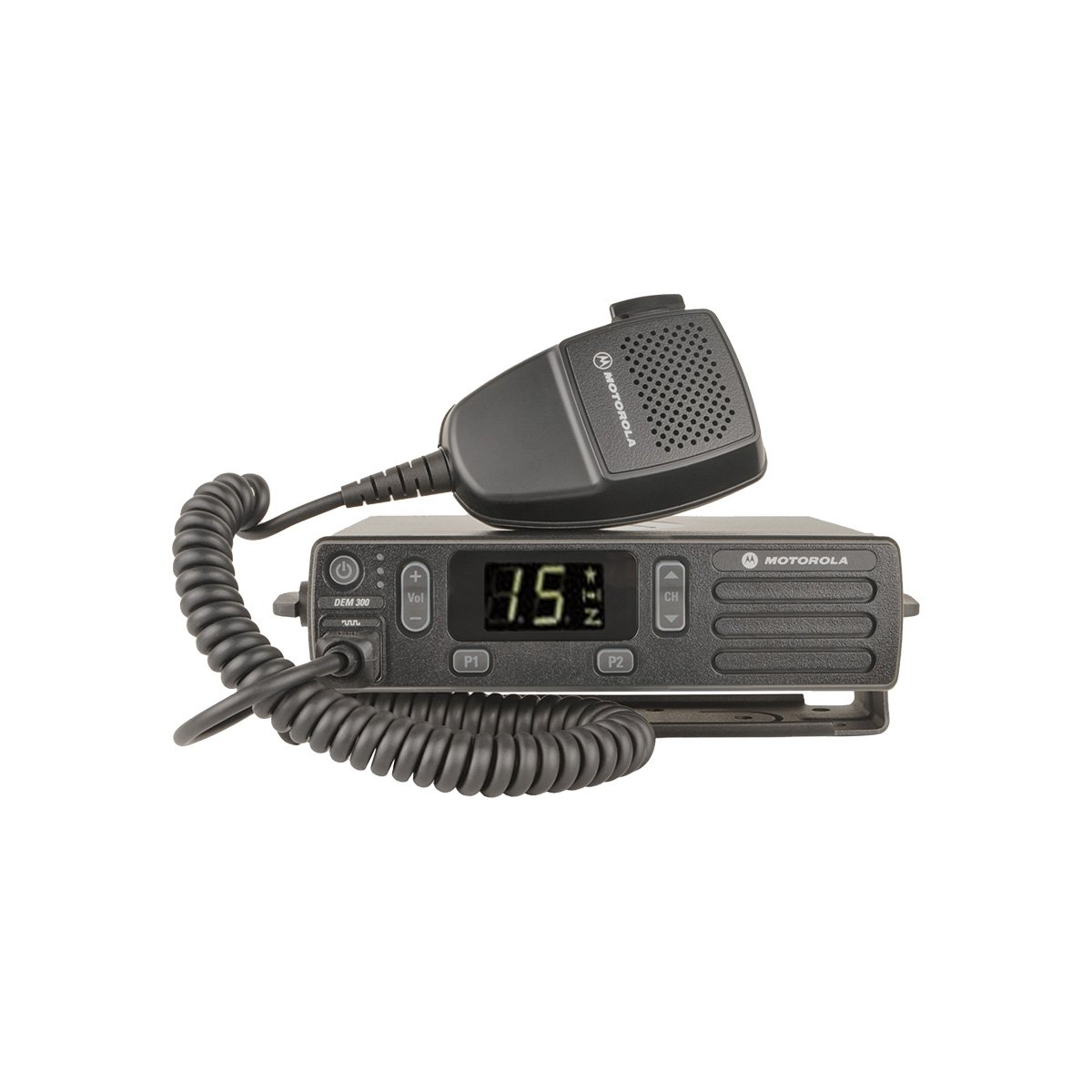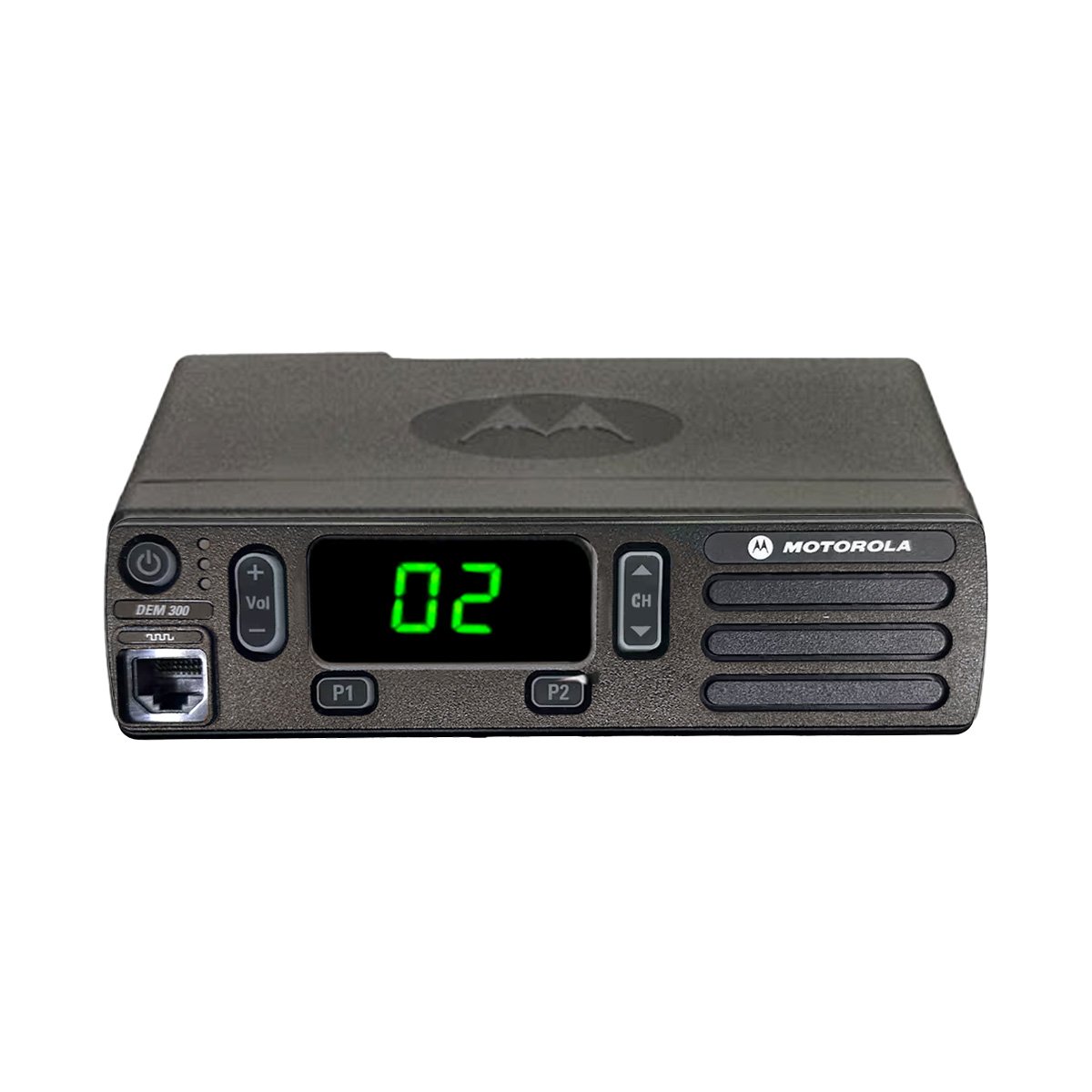 El DEM300 cuenta con una pantalla numérica de dos caracteres, soporte para PTT externo o pedal, rastreo de canal digital/análogo y prioritario, protección con contraseña, y cumple con la clasificación IP54 contra polvo y humedad. También es compatible con normas militares estadounidenses (MIL-STD-810 C, D, E, F y G). Incluye funciones como escaneo por votación, señalización MDC1200, Quik Call II, y puede operar en modo directo de capacidad dual (solo en versión digital).