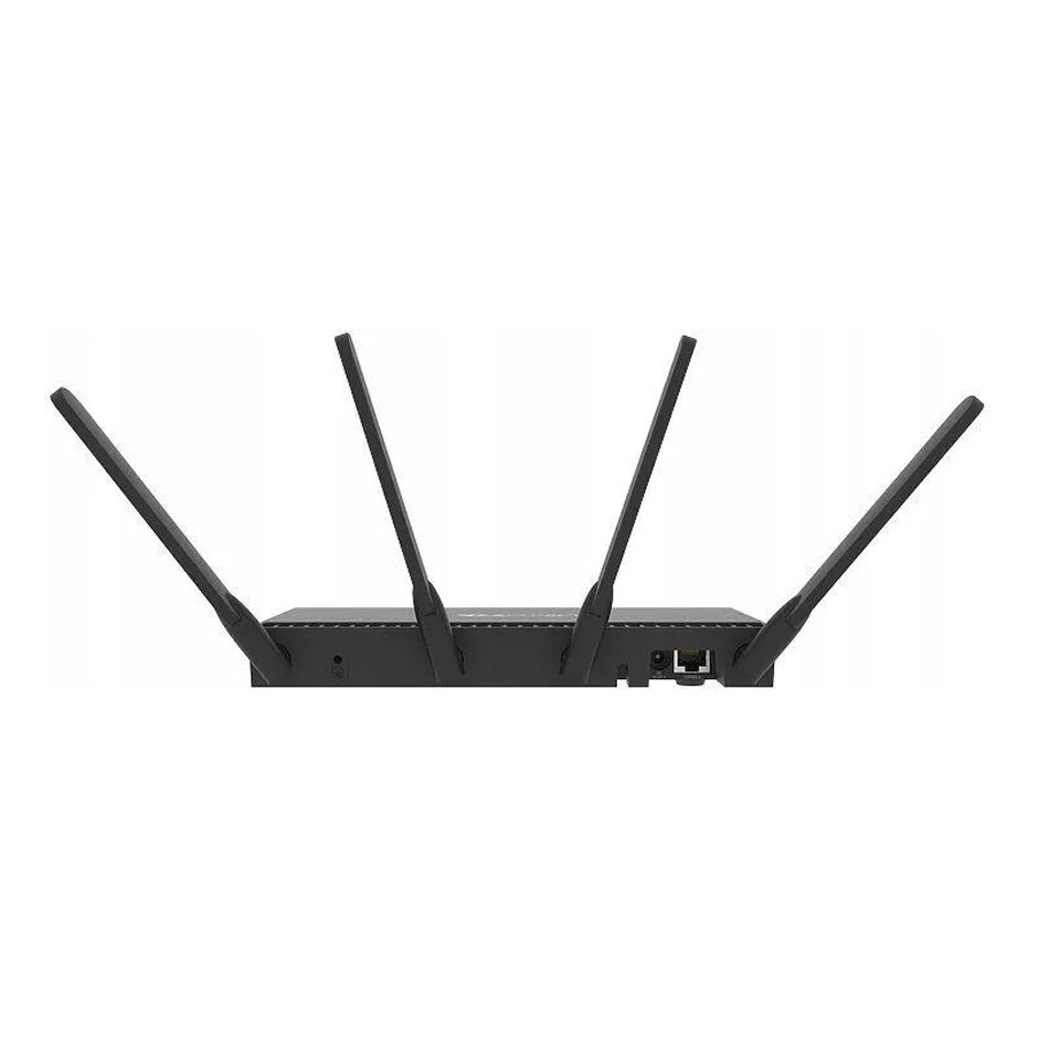 El RB4011iGS 5HacQ2HnD-IN (modelo WiFi) es de doble banda, unidad de cuatro cadenas con un rango de 1733 Mbps en 5GHz. Para dispositivos heredados, la unidad también cuenta con una tarjeta inalámbrica de 2.4 Ghz de doble cadena, y un puerto miniPCI-e-